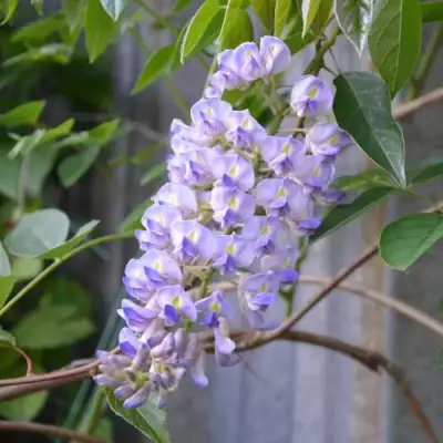 Глициния Блю Мун — выразительная, морозостойкая лиана, подходящая для садов Беларуси благодаря высокой выносливости и стабильному ежегодному цветению. Это один из лучших сортов глицинии макростахия, сочетает быстрый рост, крупные кисти и устойчивость к холодным зимам. Лиана формирует крепкие вьющиеся побеги длиной 6–10 метров, ежегодно прибавляя до 2 метров. Молодые плети пластичные, легко направляются по опоре, а по мере взросления деревенеют и создают прочный каркас для арок, беседок и вертикального озеленения.
