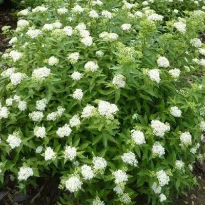 Очень нежный и изящный кустарник! Цветёт обильно, белые шапочки цветов смотрятся очень воздушно. Уход минимальный, что для меня большой плюс.