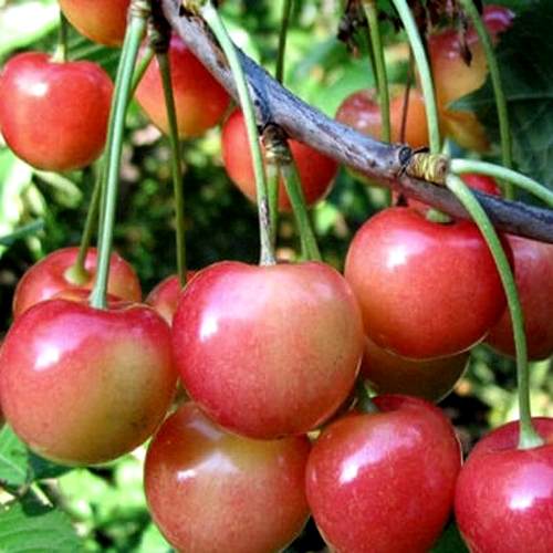 Плоды крупные, массой до 6,5 грамм, сердцевидной формы с немного изогнутой плодоножкой. Плоды созревают в конце июня, а сбор урожая можно начинать во второй половине июля. Они завязываются парами, что значительно увеличивает урожайность. Кожица оранжево-желтая с ярким румянцем и темно-красными полосками, привлекает внимание своей яркостью и блеском.