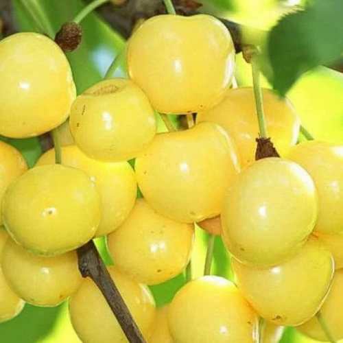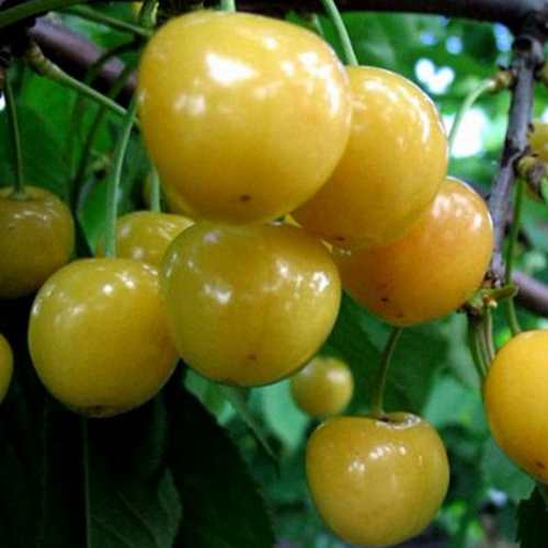 Урожайность данного сорта выше средней, что в сочетании с высокой транспортабельностью позволит вам наслаждаться свежими плодами, которые легко перенести на большие расстояния. Черешня сорта Россошанская золотая созревает во второй декаде июля. Плоды крупные, весом 6-7 граммов, имеют округлую или сердцевидную форму и ярко-желтый цвет с нежным розовым румянцем на солнечной стороне. Внутри черешни находится кремово-желтая мякоть средней плотности, которая радует своим вкусом — сладким, с еле заметной кислинкой и изысканным медовым привкусом.