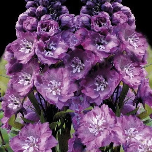 Главное украшение сорта — длинные, до 70 см, вертикальные кисти из плотных, округлых цветков диаметром около 5–7 см. Окрас — оттенки от розово-малинового и до насыщенно-сиреневого с белым центром, что придаёт цветам объём и текстуру. Цветение обильное, с начала июня до середины июля, при своевременной обрезке возможна вторая волна ближе к августу. Аромат слабый, почти незаметный, но для пчёл и бабочек этот дельфиниум — привлекательный объект.