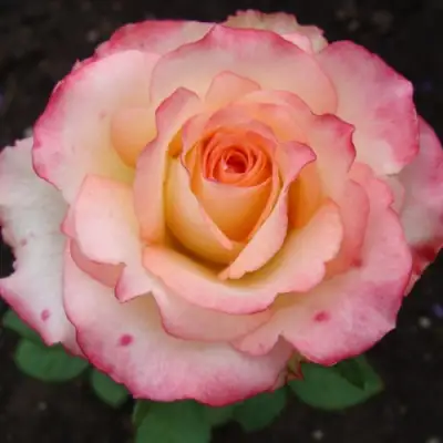 Основная окраска цветков у розы Дуэт перламутрово-кремовая, что придает ей особую утонченность. Кайма лепестков парит от розовой и малиновой до насыщенного персикового или даже сиреневого оттенка. Такая палитра создает незабываемый визуальный эффект, особенно при групповом выращивании.