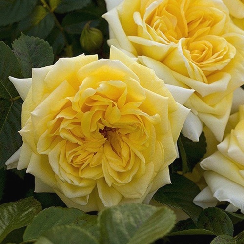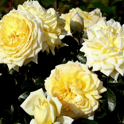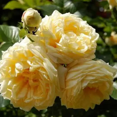 Цветки Надя Мейдиланд имеют светло-желтую основу с белой каймой, что создает яркую и насыщенную окраску. Каждый цветок шаровидной формы и имеет диаметр от 10 до 12 см. Лепестки густомахровые, их количество достигает 95-98 штук. Цветки собраны в соцветия, каждый стебель вмещает от 10 до 12 цветков. Бутоны имеют форму бокала, что добавляет изящества и очарования к данному сорту роз.