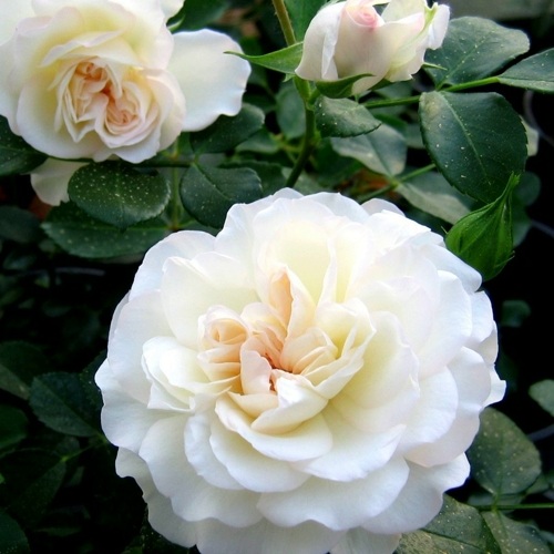 Цветение роз Вайт Мейдиланд начинается в мае и продолжается до сентября. Они радуют весь сезон своими прекрасными махровыми цветками. Цветки имеют диаметр около 8 см и окрашены в изысканный белый цвет. Бутоны сорта Вайт Мейдиланд имеют слабый аромат, но компенсируют его своей непревзойденной красотой.