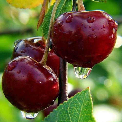 Что касается самой вишни, то она порадует вас крупными плодами среднего веса 4,8 г. Ягоды округлой формы, темно-красного цвета с мелкой косточкой, отлично отделяющейся от мякоти, придутся по вкусу не только гурманам, но и простым любителям сладких угощений. Мякоть плода, темно-красного цвета, обладает средней плотностью и сочностью, вкусовые качества которой оцениваются на 4,8 балла. Вкус отличается приятным кисловато-сладким оттенком, а сок имеет насыщенный темно-красный цвет, что подчеркивает его великолепие.