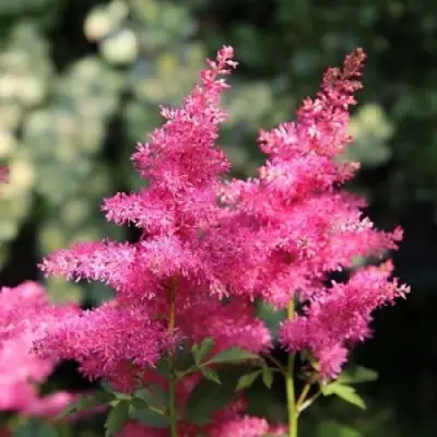 Цветение Санни Дей наступает в период с июня и продолжается в июле. Соцветия собраны в перистые метёлки до 20 см в длину. Лепестки окрашены в вариации от нежно-розового до сочного малинового — этот градиент придаёт роскошный визуальный эффект. Аромат у цветков мягкий, едва уловимый. Цветение длительное — до трёх–четырёх недель, соцветия сохраняются плотными и не выгорают в тени. Это отличный материал для срезки — букеты сдержано красивые, без резких запахов.